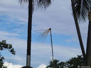 Le lancer du javelot était connu dans tout le Pacifique, l’objectif était de lancer le plus loin possible. La technique de propulsion consistait à tenir le javelot dans une main, l’index appuyé sur la partie arrière, l’autre main servant à le guider. Les atouts pour être un bon lanceur était l’adresse, la souplesse, la puissance et l’équilibre. En effet, l’objectif est de piquer le javelot, de 2,50 mètres de long, sur une noix de coco surélevé à 7,50 m de haut.