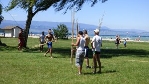 Le lancer du javelot était connu dans tout le Pacifique, l’objectif était de lancer le plus loin possible. La technique de propulsion consistait à tenir le javelot dans une main, l’index appuyé sur la partie arrière, l’autre main servant à le guider. Les atouts pour être un bon lanceur était l’adresse, la souplesse, la puissance et l’équilibre. En effet, l’objectif est de piquer le javelot, de 2,50 mètres de long, sur une noix de coco surélevé à 7,50 m de haut.