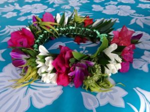La polynésie est considérée comme un véritable paradis fleuri tant le nombre de variétés de fleurs est important. Tous les jours, les polynésiens se parent d’au moins une fleur portée à l’oreille ou dans un chignon. D’autres se coiffent de couronnes de fleurs en toutes occasions et y ajoutent des colliers pour donner un air de fête à leur tenue. À cause de l'achat des fleurs, il sera demandé € 10.- pour confectionner votre propre couronne.