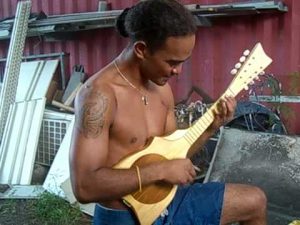 La bouche du ukulele tahitien est couverte d’une mince plaque de bois qui porte le chevalet, son corps et son manche sont d’une seule pièce de bois ou de plusieurs pièces assemblées mais sans différence structurelle profonde entre le manche et le corps. Le corps est percé de part en part d’un trou conique évasé vers l’avant, bouché d’un côté par la plaque de bois sur laquelle repose le chevalet maintenu par la tension des cordes.